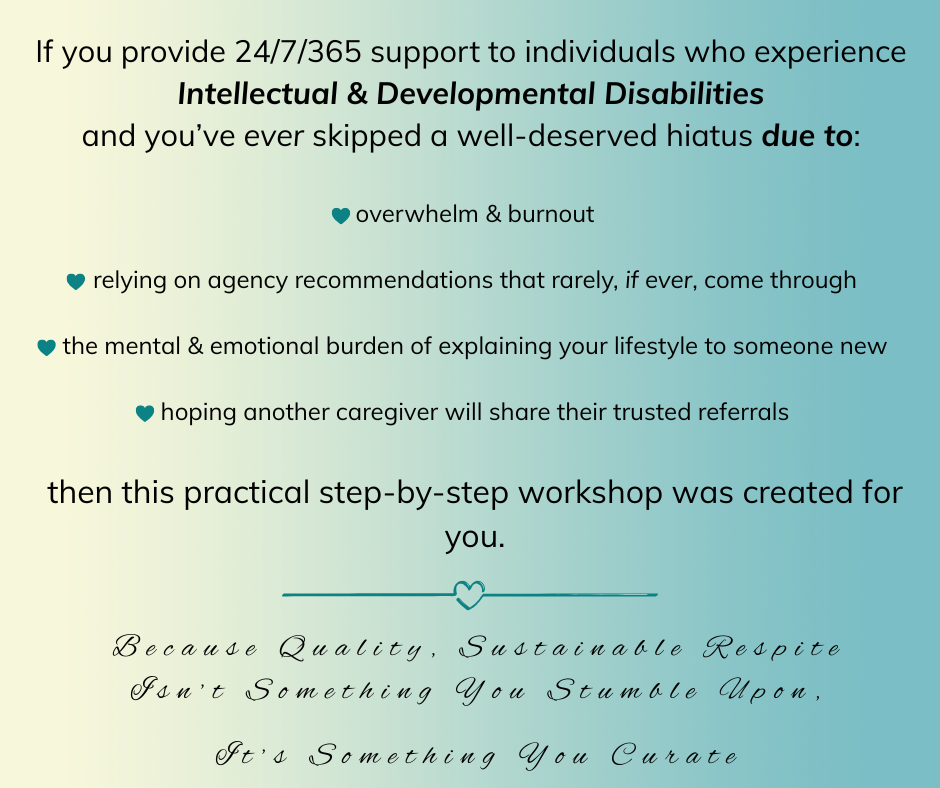 helping providers & primary caregivers walk away with clarity and confidence for who they trust, how they prepare to be away, and what standards they hold during their break,